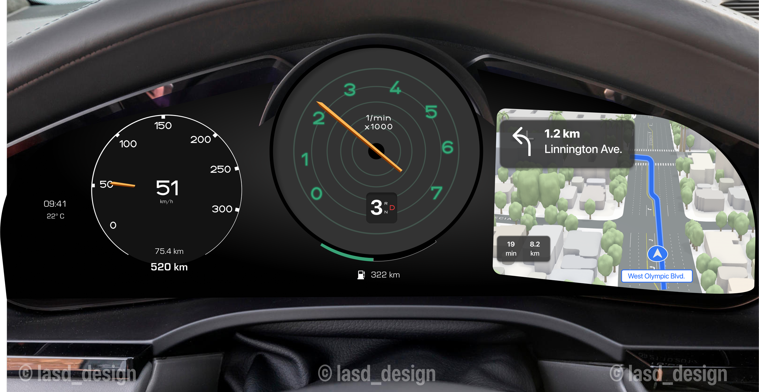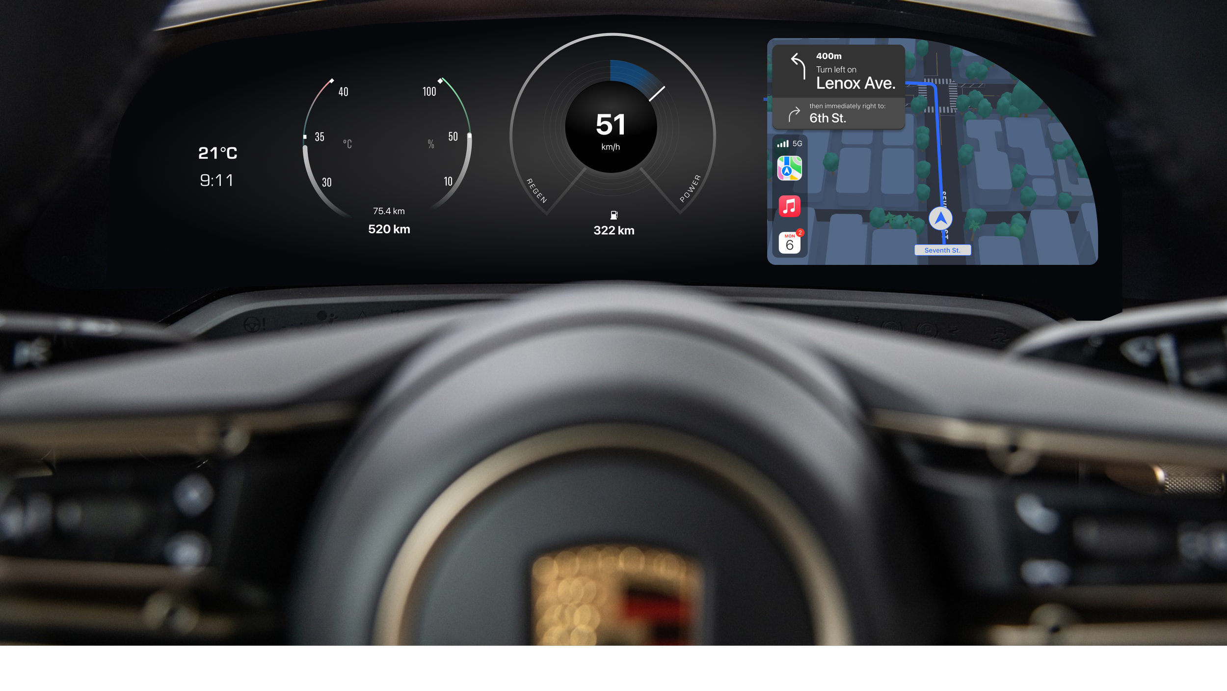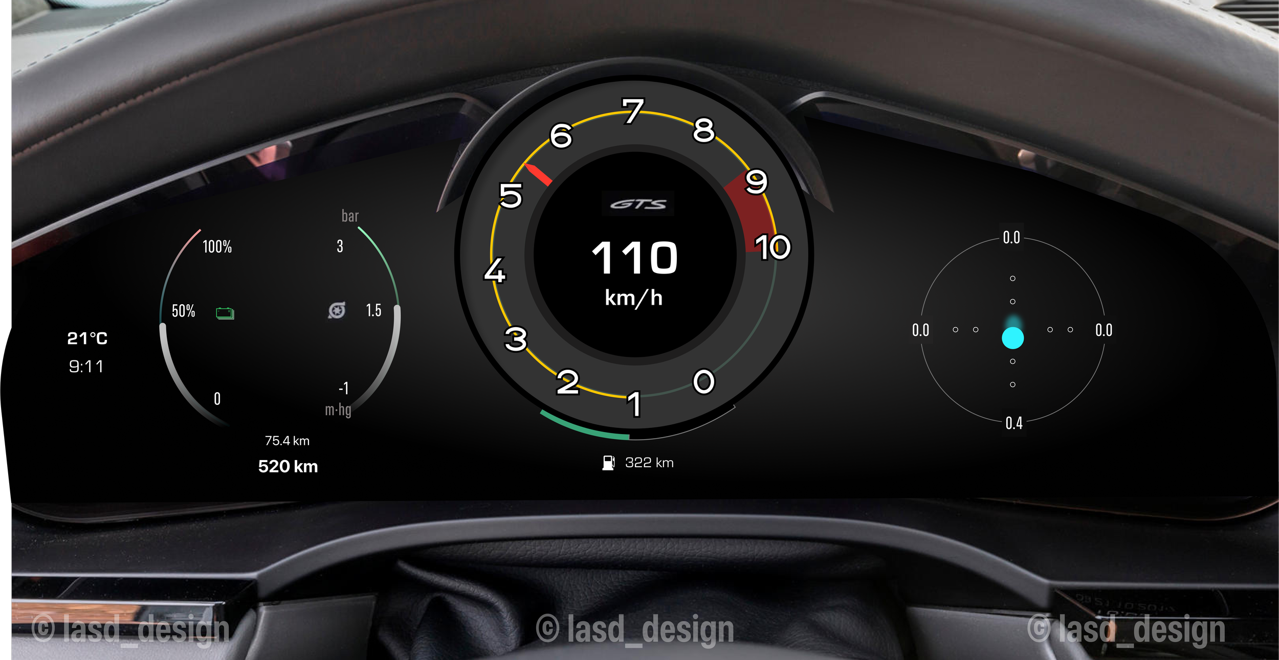 The crisp, round dials pay homage to the timeless Porsche design language, while the central tachometer— the heartbeat of any sports car—stands proudly with a modern twist. This Porsche retro-inspired instrument cluster is a harmonious blend of heritage and innovation. Designed for the discerning driver who appreciates the elegance of analog and the power of digital, this interface embodies a seamless fusion of both worlds. The crisp, round dials pay homage to the timeless Porsche design language, while the central tachometer— the heartbeat of any sports car—stands proudly with a modern twist.