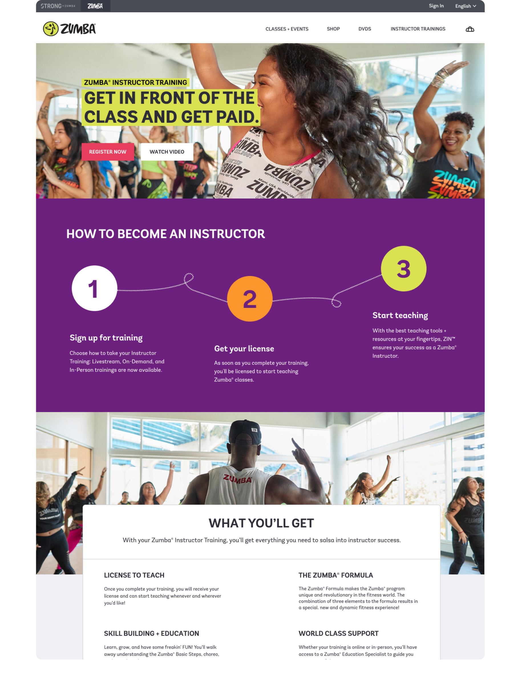 When working at Zumba, I had the challenge of improving our current ‘Instructor Site’ to help increase its conversion, the surface level problem was low conversion numbers.
