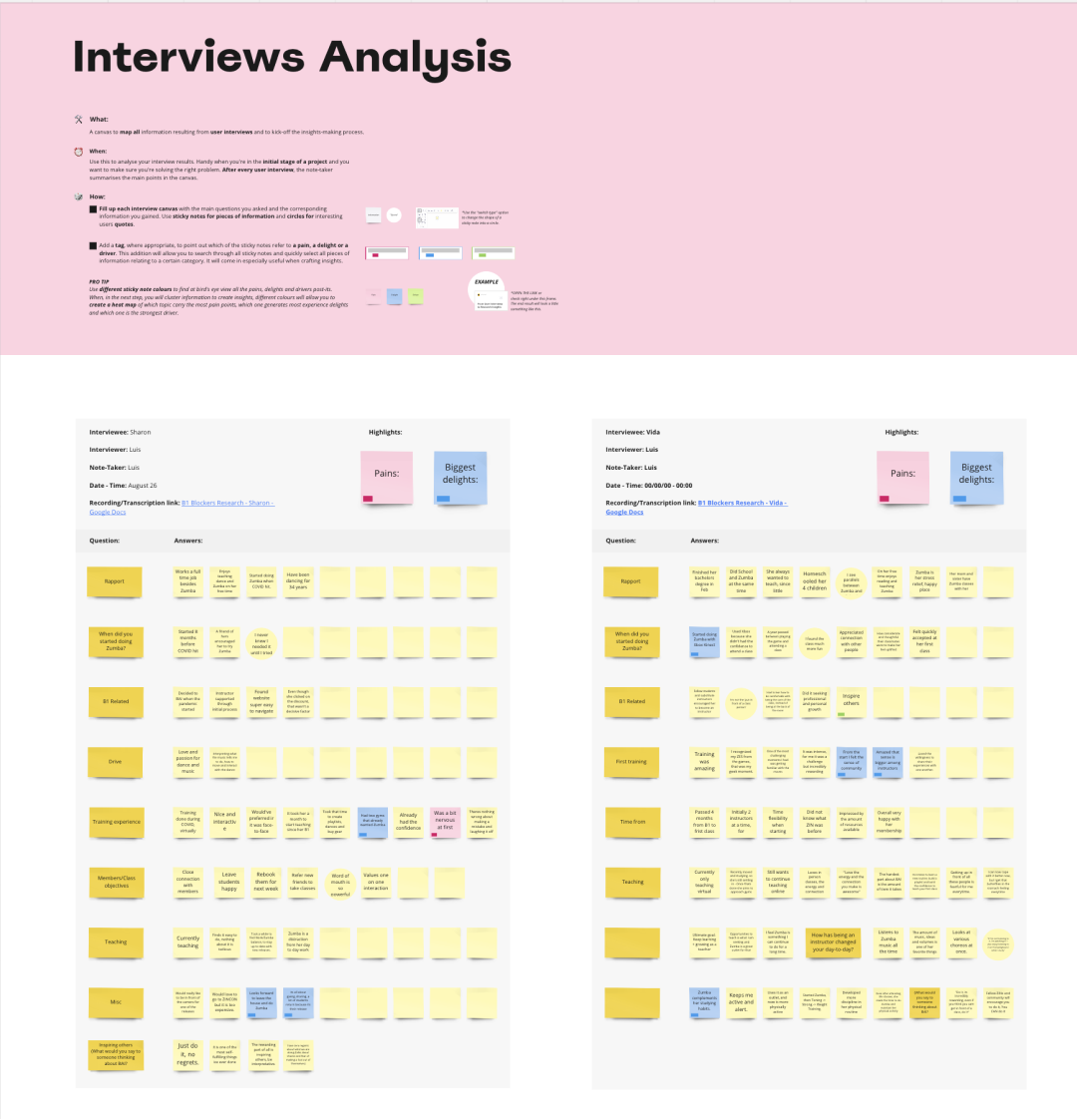 I started talking to users, to deep dive into their Instructor journey, to discover what blockers, drivers and what role Zumba had in their lives. Research took place at 2022 ZINCON.